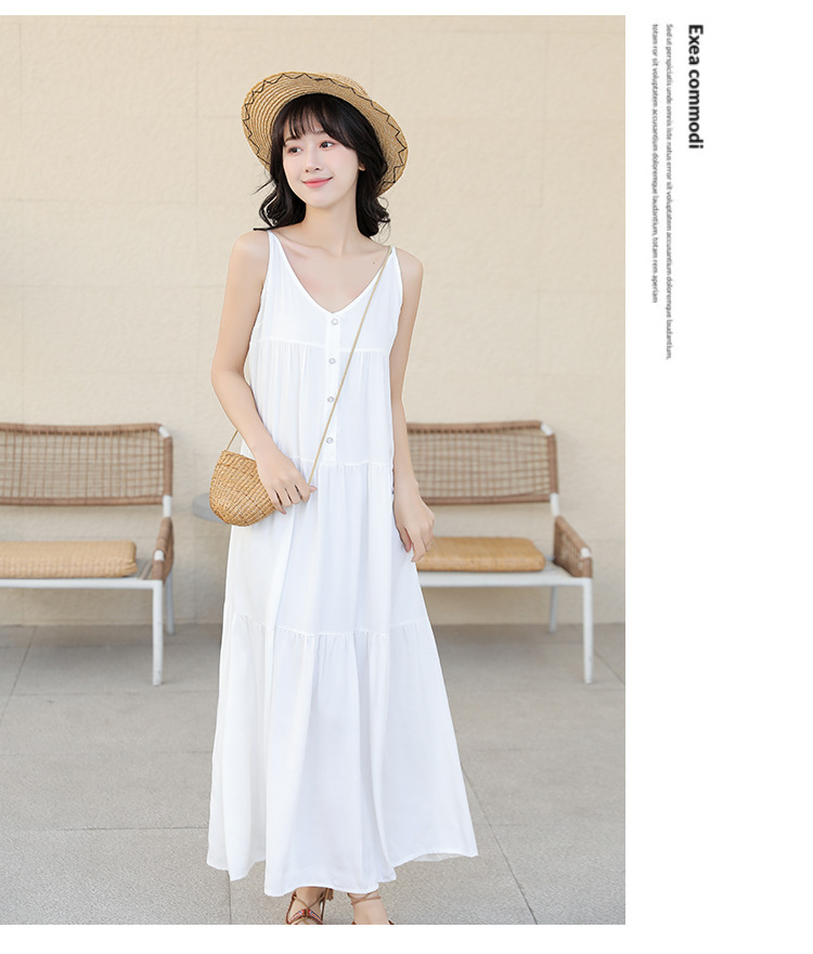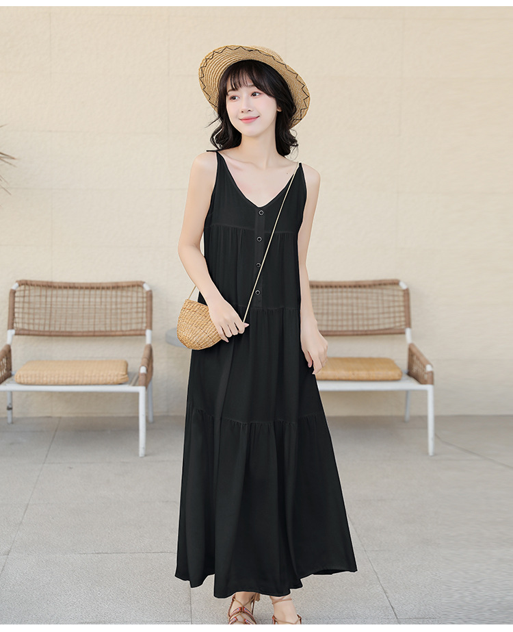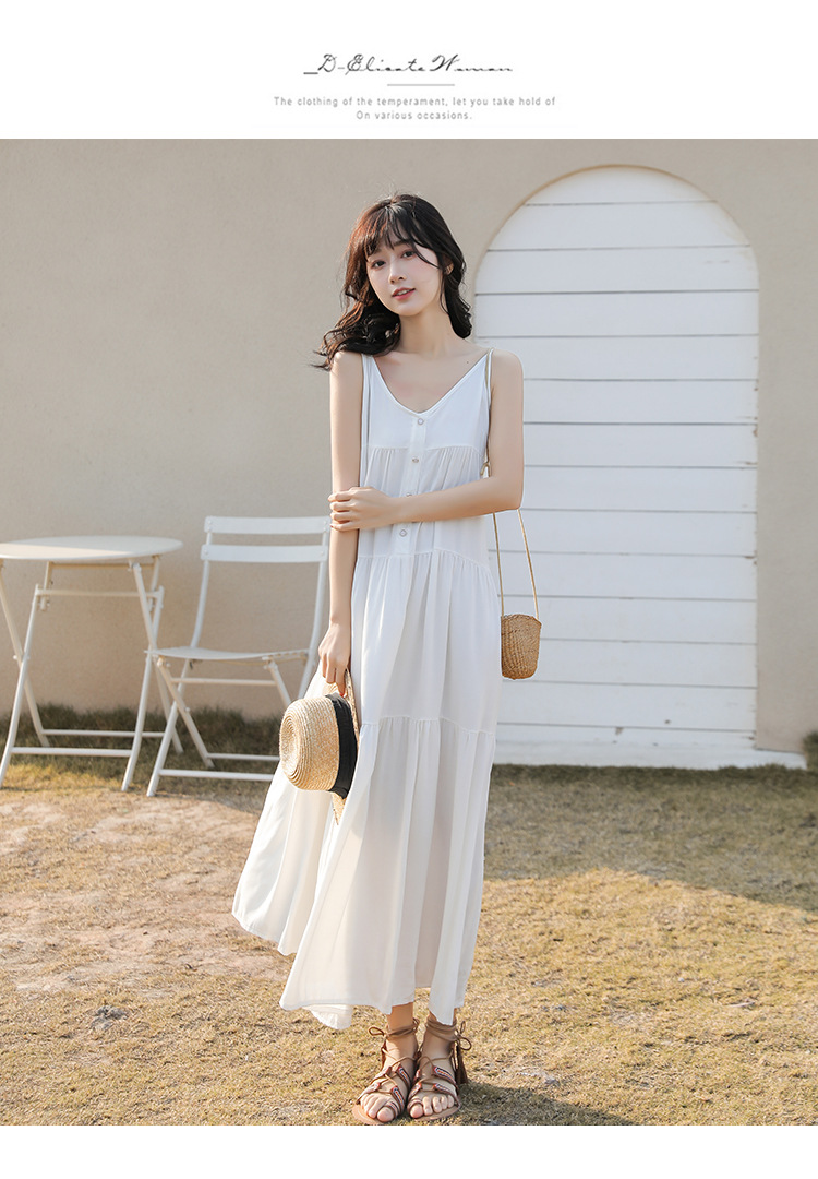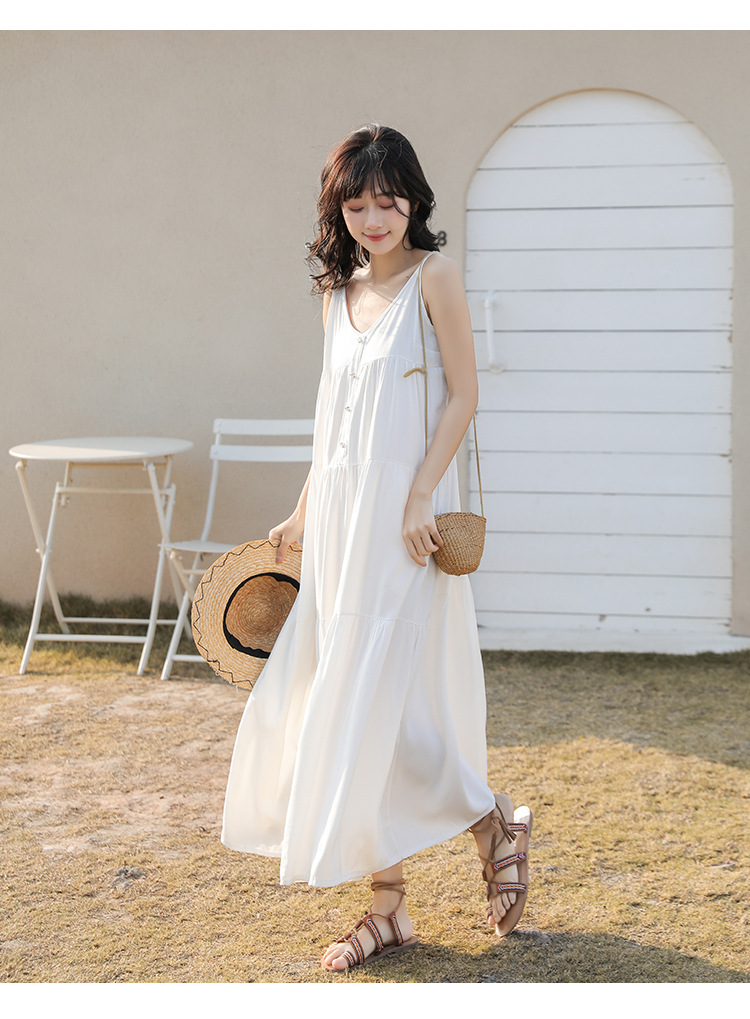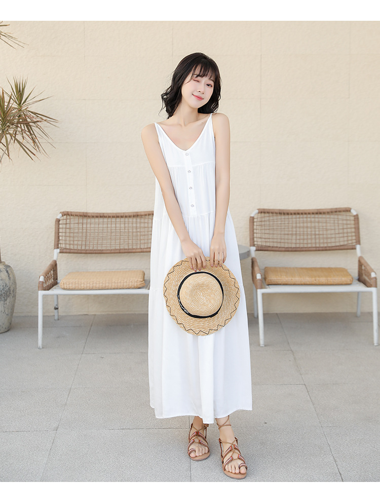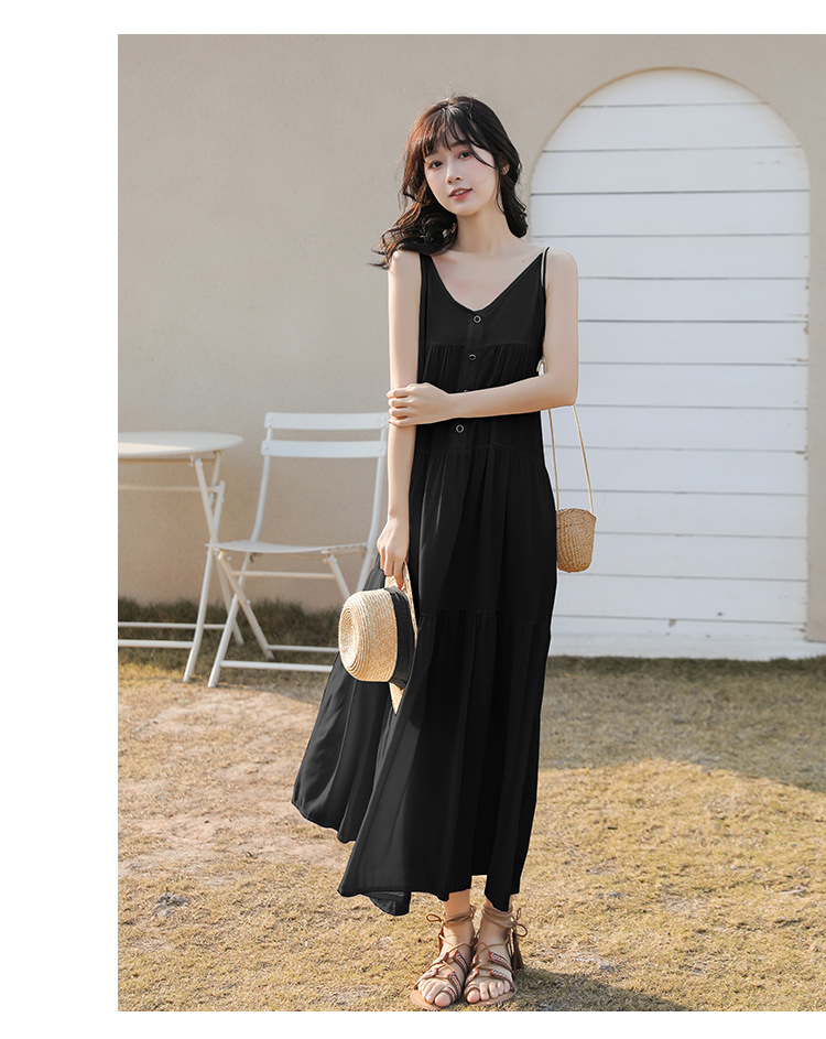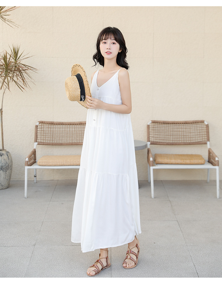リアルショット韓国夏用ノースリーブ Vネックロングホルタードレス
