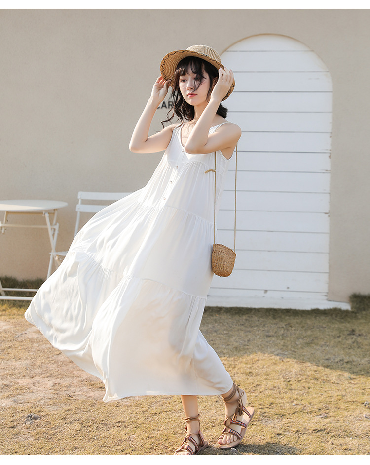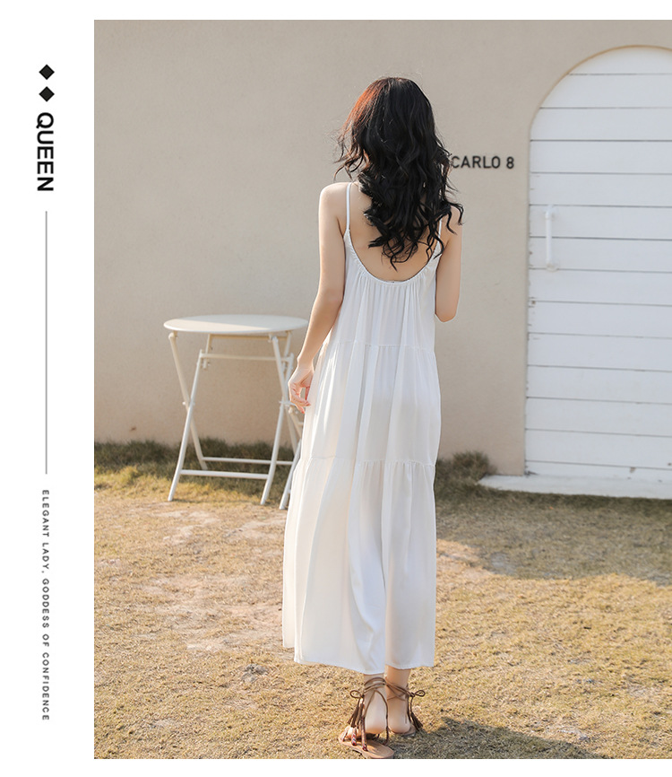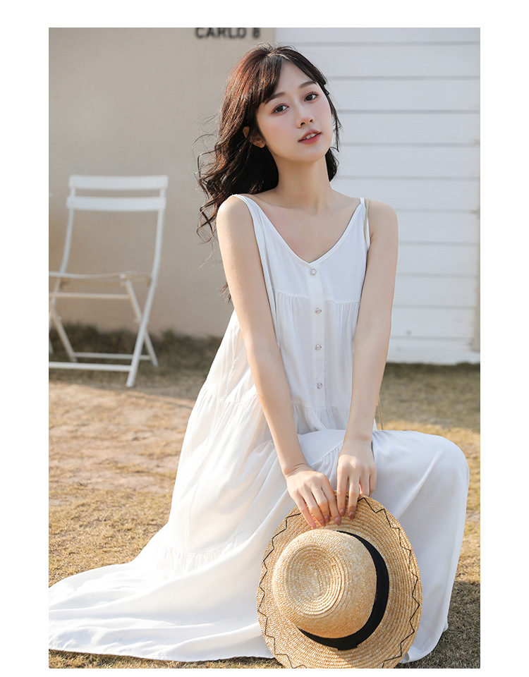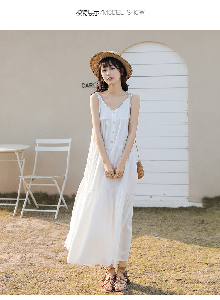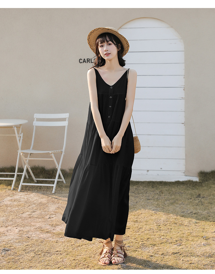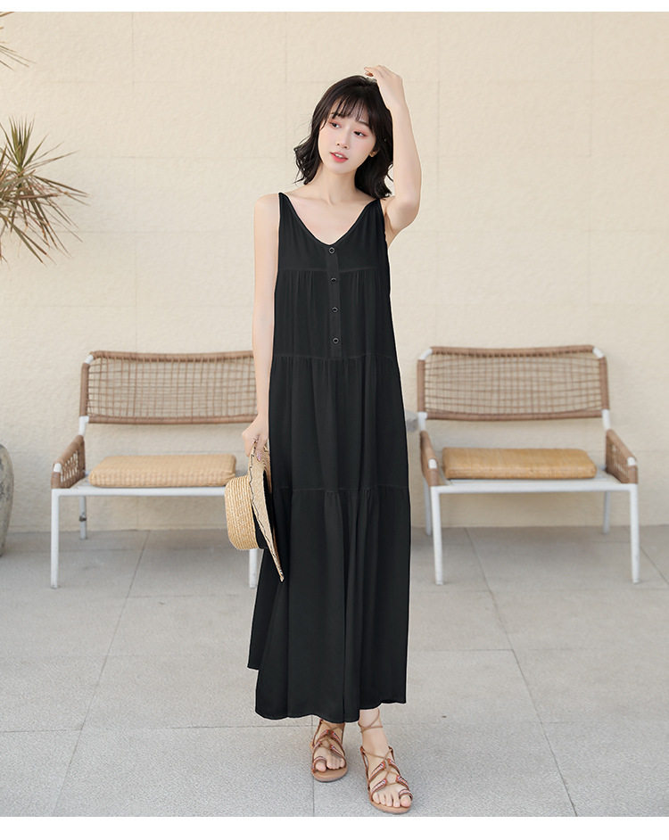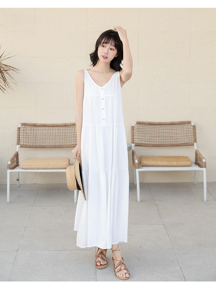 リアルショット韓国夏用ノースリーブ Vネックロングホルタードレス